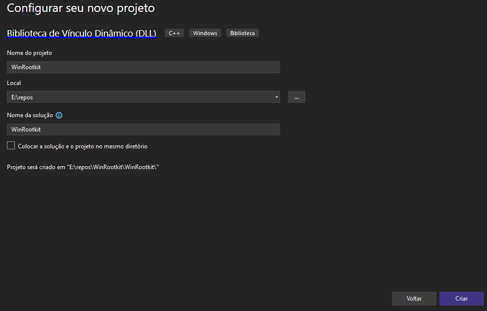 Open Visual Studio 2022 and create a new project using the "Dynamic-Link Library (DLL)" template, then click "Next". Give your project a name and click "Create".