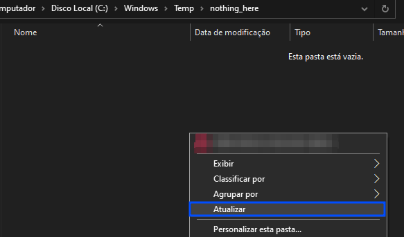 4 – Go to the directory "C:\Windows\Temp\nothing_here", right-click inside the folder, and click on "Refresh".
